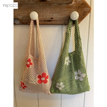 סיטונאי במפעל מחיר המניה חדש עיצוב פרח רקמת כותנה רשת קניות tote תיק עבור מכולת ירקות פירות
